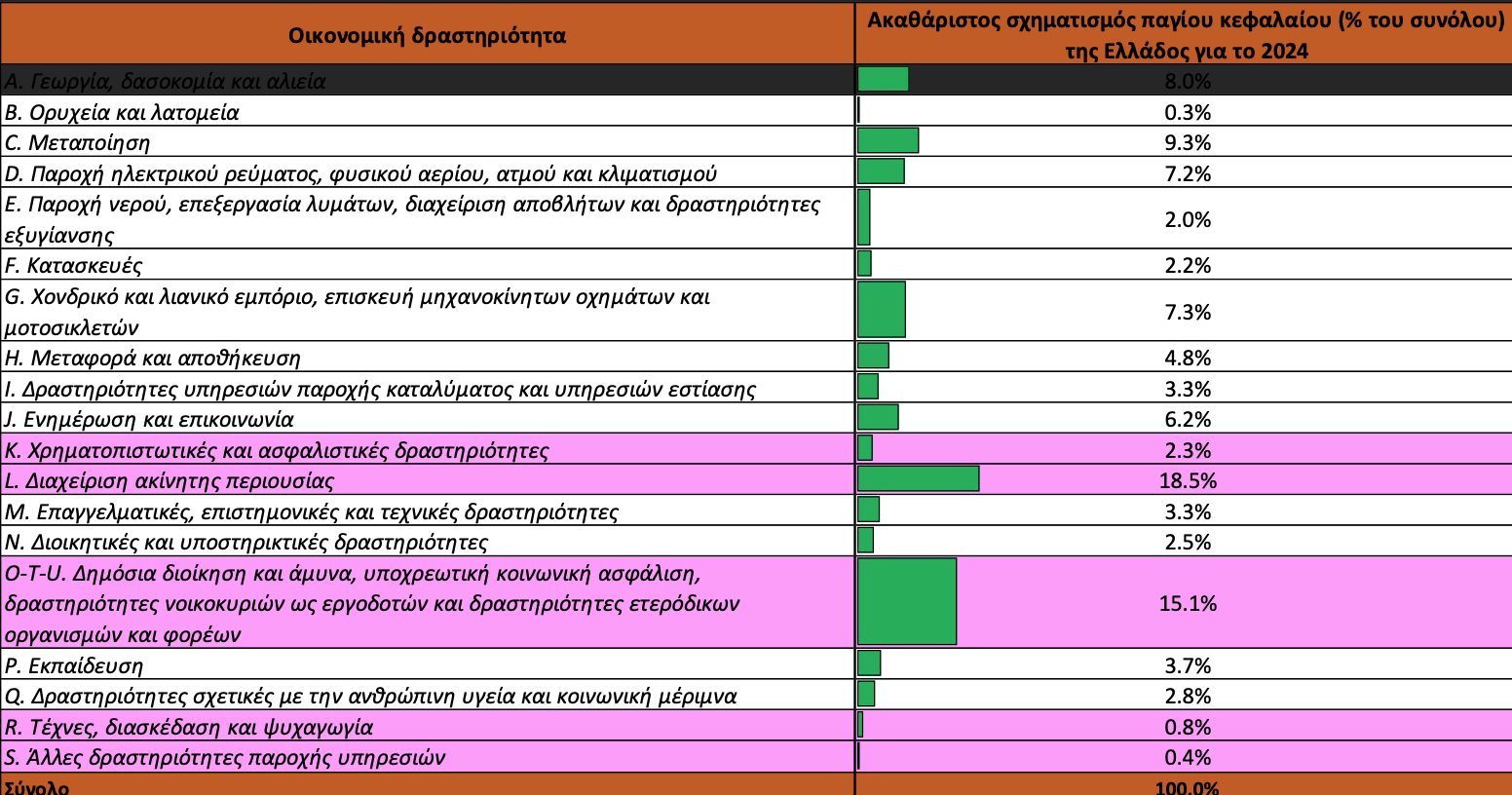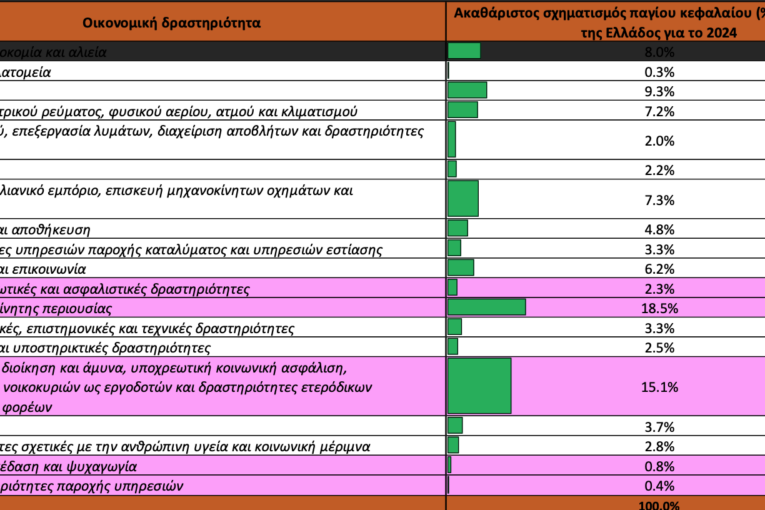 Πίνακας: Κατανομή Επενδύσεων ανά Οικονομική Δραστηριότητα, Ελλάδα, 2024